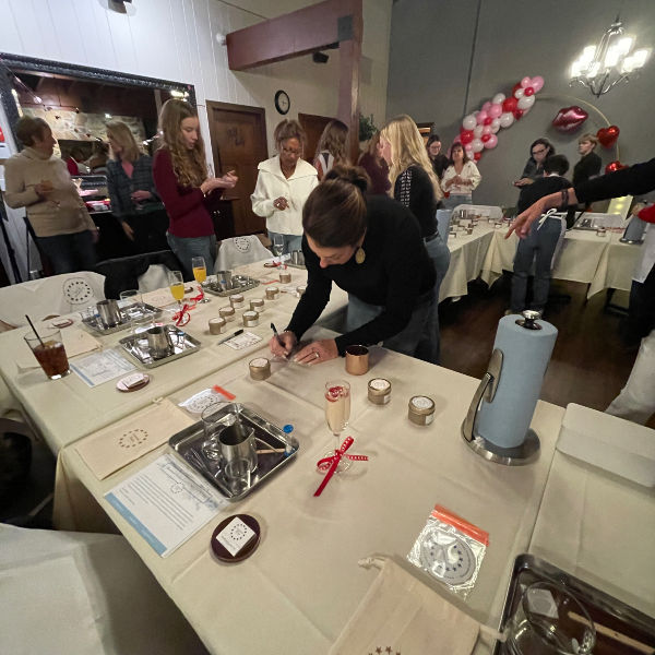 The workshop is led by an experienced chandler and will include education on candle wax, wicks, fragrance oils, and candle care and we provide easy step-by-step instructions. We will teach you how to blend several complimentary fragrances to create your own unique scent. Our fragrance oils include woodsy, fruity, floral, fresh, citrus, oriental, and gourmand scents.